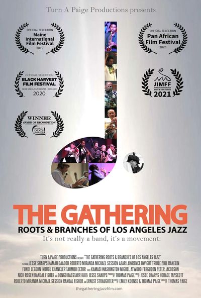 The Gathering: Roots & Branches of Los Angeles Jazz chronicles a multi-generational music project started in 2005 by Jesse Sharps, one of the great composers to come out of the progressive improvised music scene of Los Angeles and an early bandleader of Horace Tapscott's Pan Afrikan Peoples Arkestra. It focuses on the Leimert Park district and progressive jazz scene of Los Angeles covering the history of the music, and the tradition of elders guiding the young players on the scene. With live performances and behind the scenes footage of the historic recording session that started the project off, and interviews and performances by local legends Azar Lawrence, Dwight Trible, Kamau Daáood, Phil Ranelin, and Roberto Miranda as well as rising stars Kamasi Washington, Miguel Atwood-Ferguson and many others, the film covers a rich and evolving musical community.
